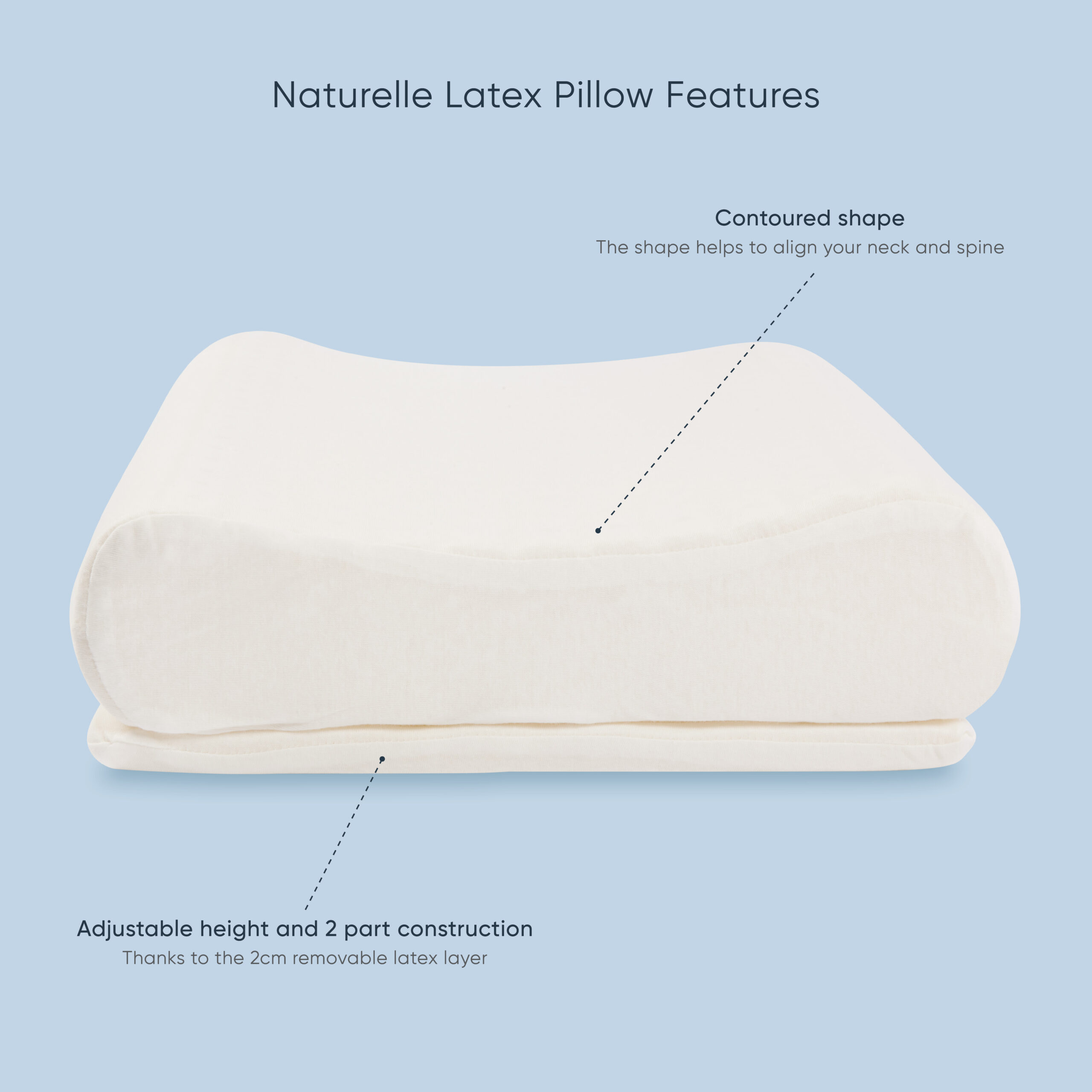 Designed for all sleeping positions and physiques, the all-natural, high-quality Naturelle latex pillow conforms to the shape of your head and neck to provide continuous support throughout the night.